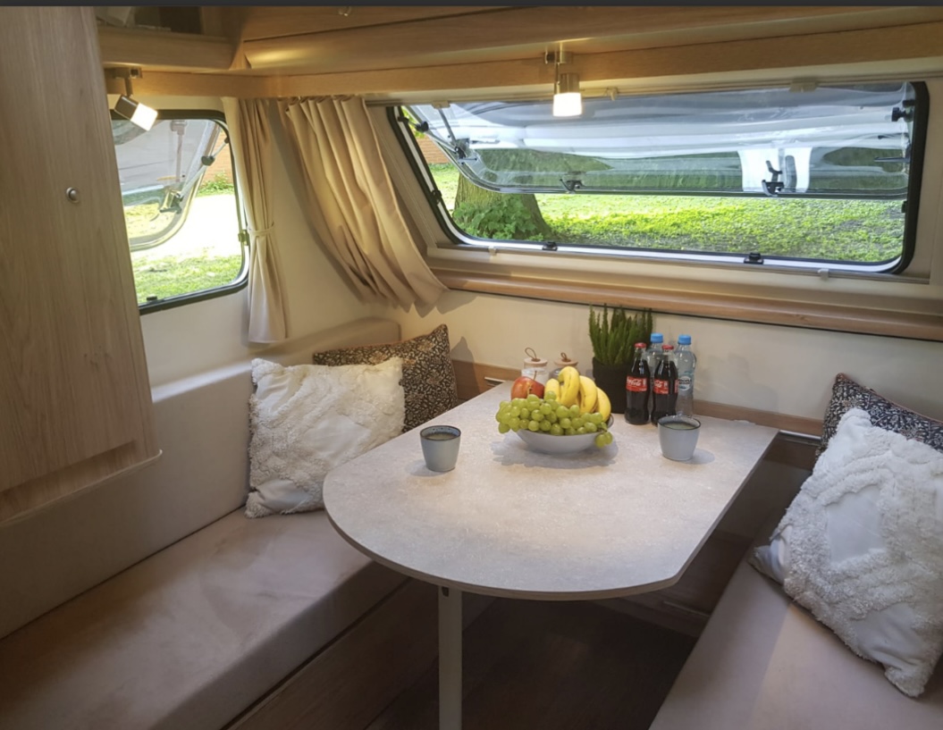 Pohodlně v novém karavanu Sport NTL, WC, Sprcha,teplá voda,kuchyňka s dřezem, plyn. sporákem, lednicí s mrazákem, plynová bomba, zabezpečení, pripojení 230v, nosič kol Thule pro 2x el. kolo ( možnost také půjčit Specialized LEVO COMP TURBO velikost L a M),