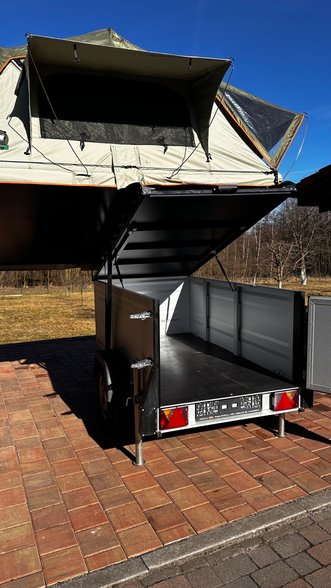 Střešní stan lze pronajmout samostatně, nebo včetně vozíku do kterého lze doložit kompletní vybavení na dovolenou. Stany jsou nové, rozměry ve složeném stavu 180x120cm v rozloženém 240x180 tzn. pohodlné spaní až pro 4 dospělé osoby.